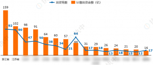 根据执中ZERONE统计,2025年8月,浙江省以159亿出资额排行第一,其次为江苏省共出资102亿,第三名为北京市98亿。从出资金额分布上来看,本月共有2个省份出资超百亿。
